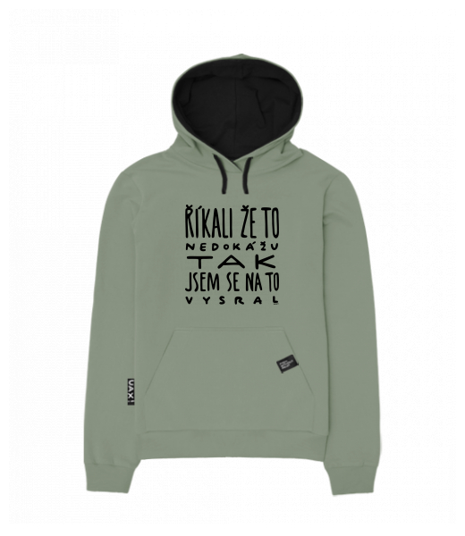 Women's light sweatshirt uninsulated for man with design 1366 ŘÍKALI ŽE TO NEDOKÁŽU TAK JSEM SE NA TO VYSRAL in color OLIVA