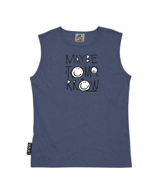Men's sleeveless MUSCLE SHIRT for man with design 1001 MAYBE TOMORROW in color JEANS