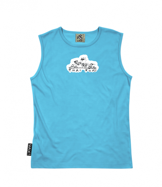 Men's sleeveless MUSCLE SHIRT for man with design 1041 THAI FUN in color BLUE ATOLL