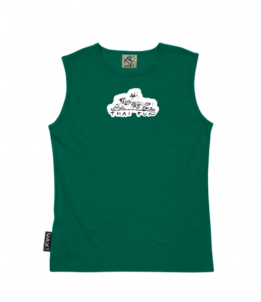 Men's sleeveless MUSCLE SHIRT for man with design 1041 THAI FUN in color UNIVERSITY GREEN