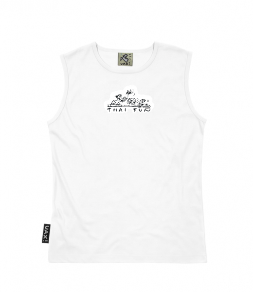 Men's sleeveless MUSCLE SHIRT for man with design 1041 THAI FUN in color WHITE