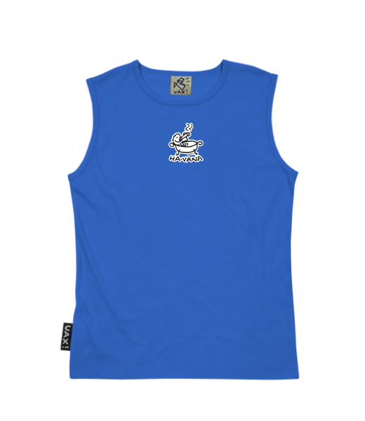 Men's sleeveless MUSCLE SHIRT for man with design 1043 HA-VANA in color ROYAL BLUE