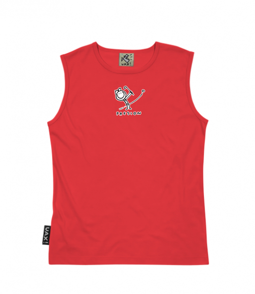 Men's sleeveless MUSCLE SHIRT for man with design 1052 PASSION in color RED
