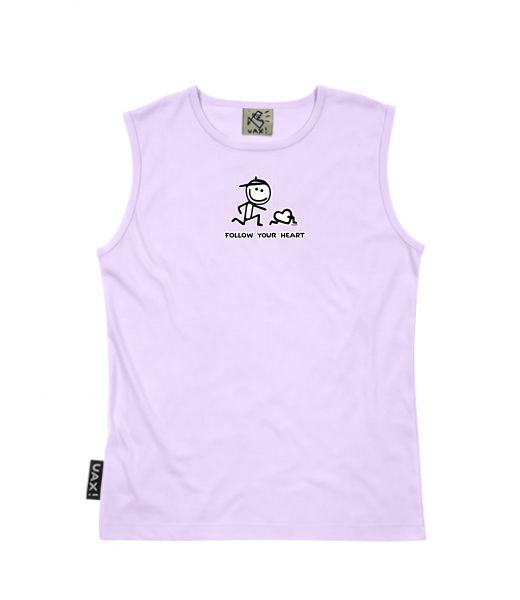 Men's sleeveless MUSCLE SHIRT for man with design 1063 FOLOW YOUR HEART in color LAVENDER