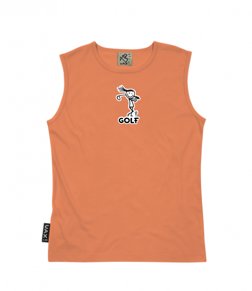 Men's sleeveless MUSCLE SHIRT for man with design 1092 GOLF in color MANDARIAN ORANGE