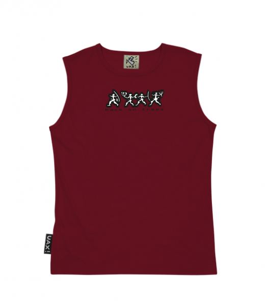 Men's sleeveless MUSCLE SHIRT for man with design 11 BACK ON TREES in color DARK RED