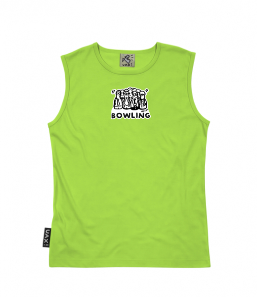 Men's sleeveless MUSCLE SHIRT for man with design 1104 BOWLING 2 in color PARROT GREEN