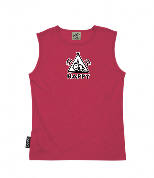 Men's sleeveless MUSCLE SHIRT for man with design 1113 HAPPY in color CHILLY PEPPER RED