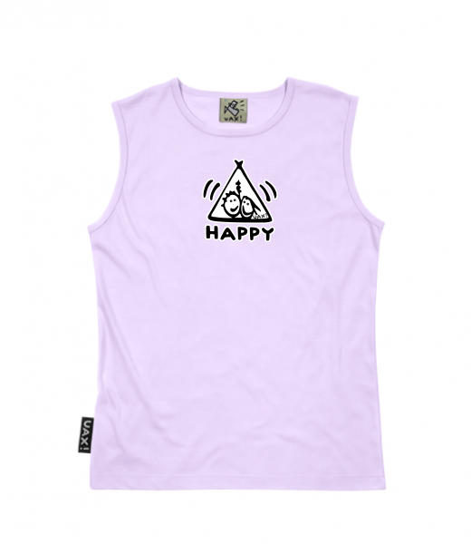 Men's sleeveless MUSCLE SHIRT for man with design 1113 HAPPY in color LAVENDER