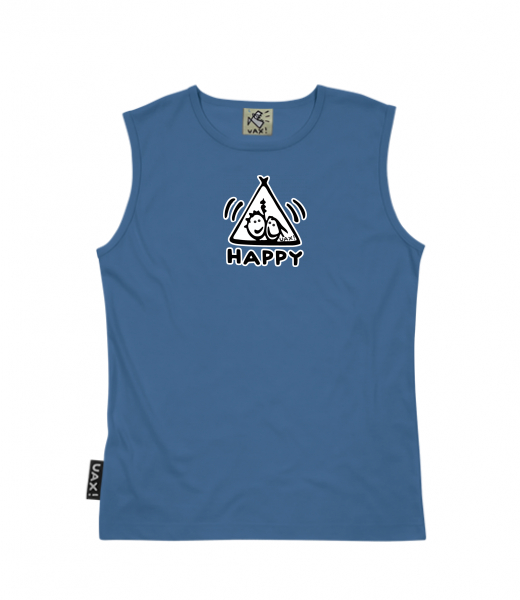 Men's sleeveless MUSCLE SHIRT for man with design 1113 HAPPY in color MOONLIGHT BLUE