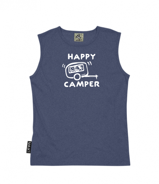 Men's sleeveless MUSCLE SHIRT for man with design 1116 HAPPY CAMPER in color JEANS