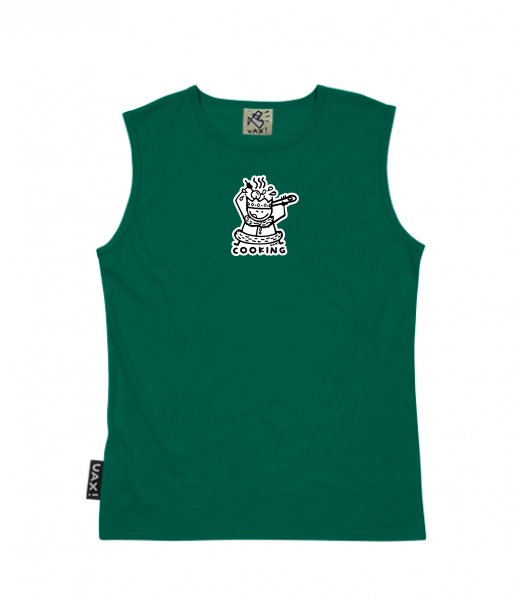 Men's sleeveless MUSCLE SHIRT for man with design 1117 COOKING in color UNIVERSITY GREEN