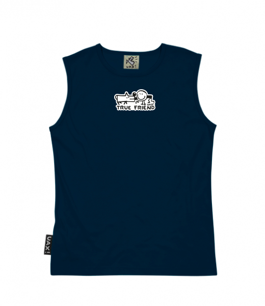 Men's sleeveless MUSCLE SHIRT for man with design 1123 TRUE FRIEND in color DARK NAVY