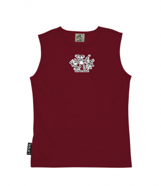 Men's sleeveless MUSCLE SHIRT for man with design 1126 SUPER MAM in color DARK RED