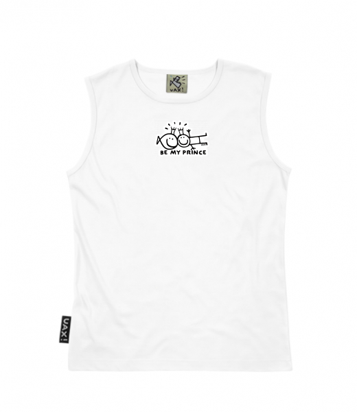 Men's sleeveless MUSCLE SHIRT for man with design 1127 BE MY PRINCE in color WHITE