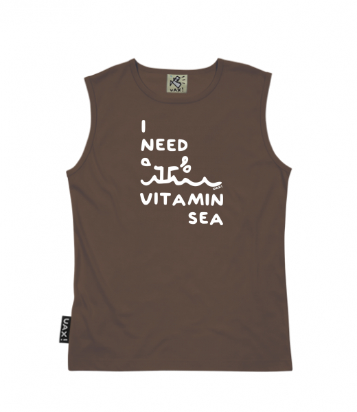 Men's sleeveless MUSCLE SHIRT for man with design 1132 I NEED VITAMIN SEA in color CHESTNUT