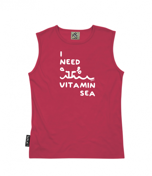 Men's sleeveless MUSCLE SHIRT for man with design 1132 I NEED VITAMIN SEA in color CHILLY PEPPER RED