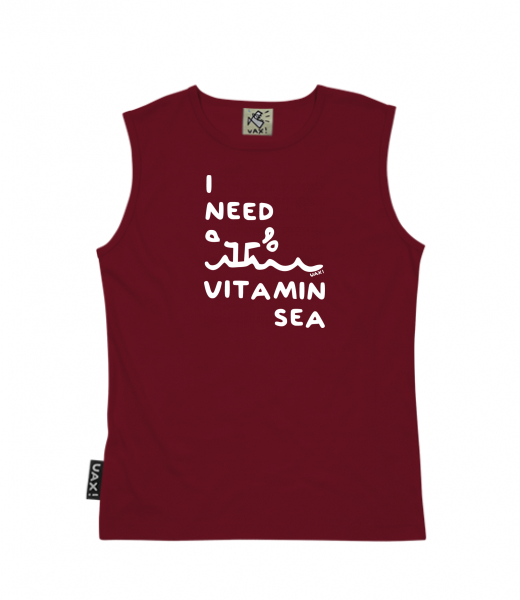 Men's sleeveless MUSCLE SHIRT for man with design 1132 I NEED VITAMIN SEA in color DARK RED