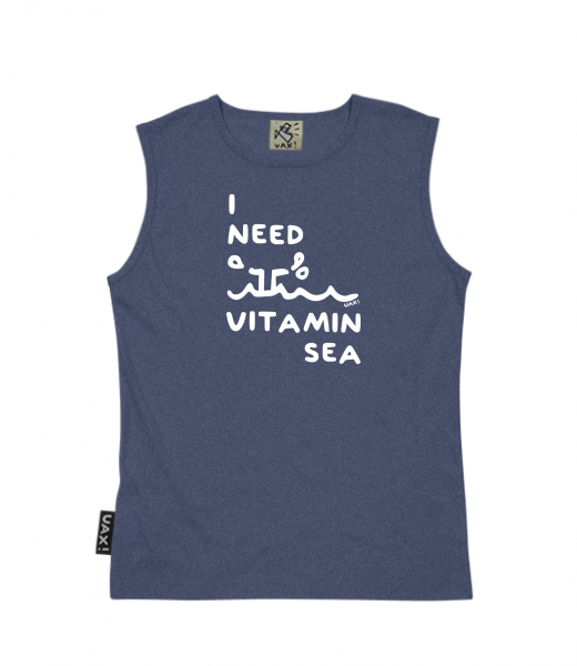 Men's sleeveless MUSCLE SHIRT for man with design 1132 I NEED VITAMIN SEA in color JEANS