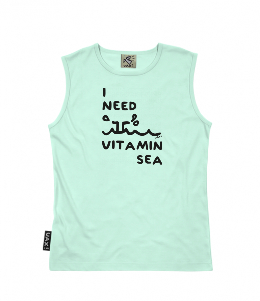 Men's sleeveless MUSCLE SHIRT for man with design 1132 I NEED VITAMIN SEA in color MINT