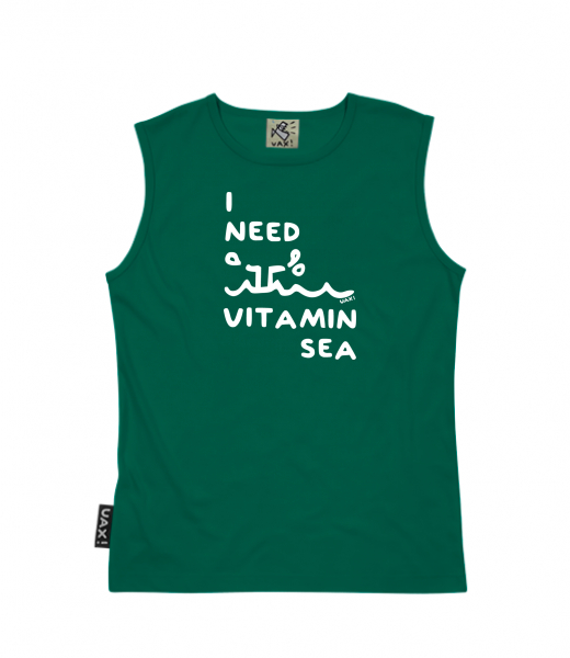 Men's sleeveless MUSCLE SHIRT for man with design 1132 I NEED VITAMIN SEA in color UNIVERSITY GREEN