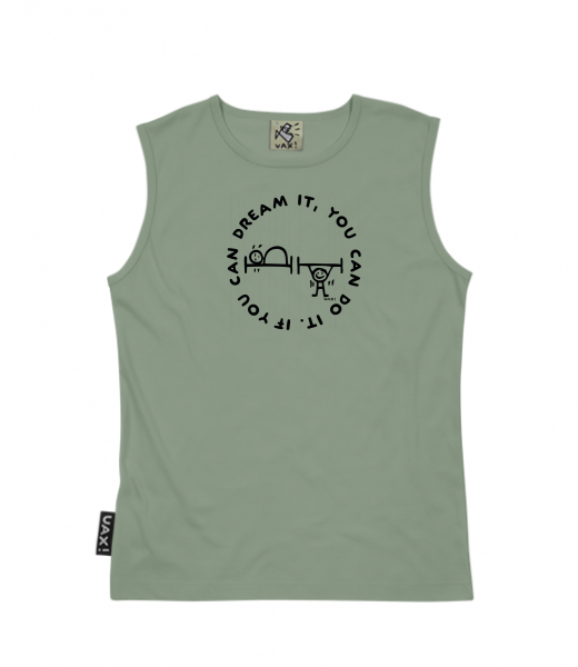 Men's sleeveless MUSCLE SHIRT for man with design 1133 IF YOU CAN DREAM IT in color OLIVA