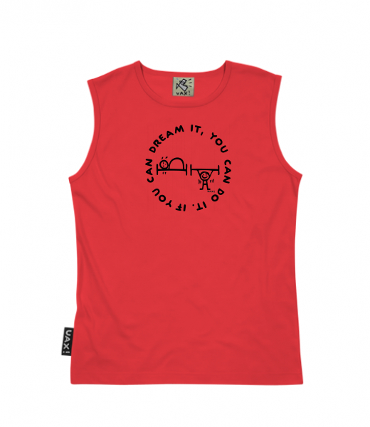 Men's sleeveless MUSCLE SHIRT for man with design 1133 IF YOU CAN DREAM IT in color RED
