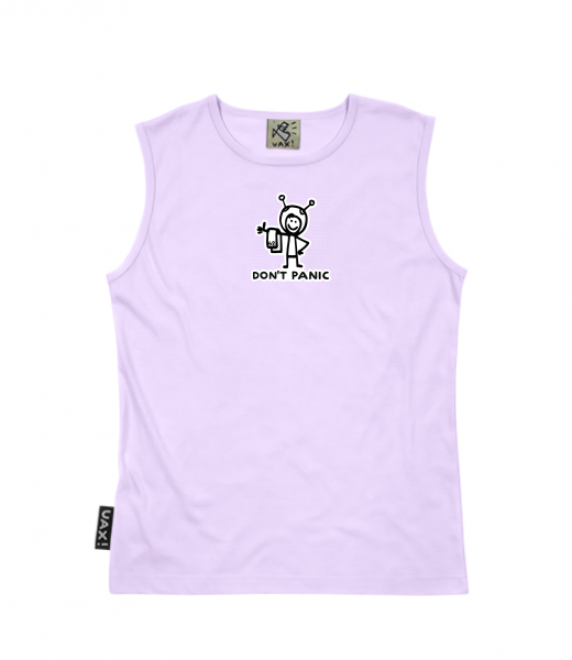Men's sleeveless MUSCLE SHIRT for man with design 1157 DON'T PANIC in color LAVENDER