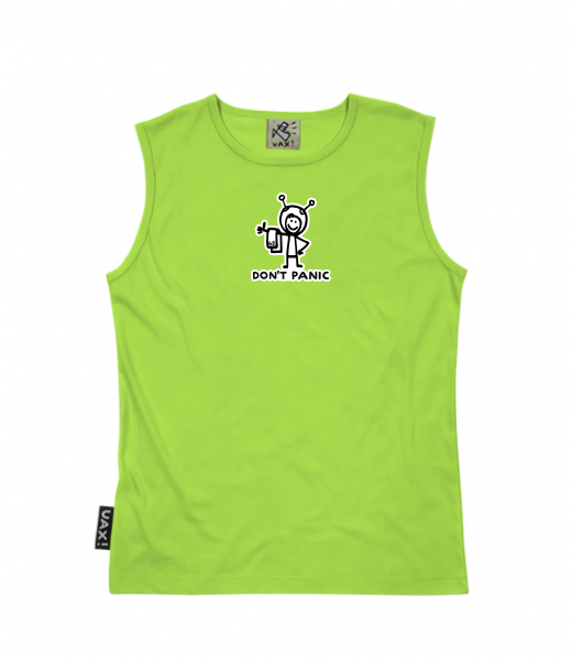 Men's sleeveless MUSCLE SHIRT for man with design 1157 DON'T PANIC in color PARROT GREEN