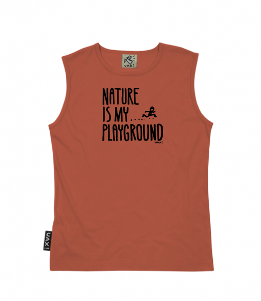Men's sleeveless MUSCLE SHIRT for man with design 1160 NATURE IS MY PLAYGROUND in color TERRA
