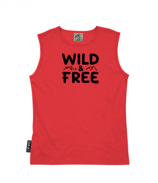 Men's sleeveless MUSCLE SHIRT for man with design 1161 WILD AND FREE in color RED