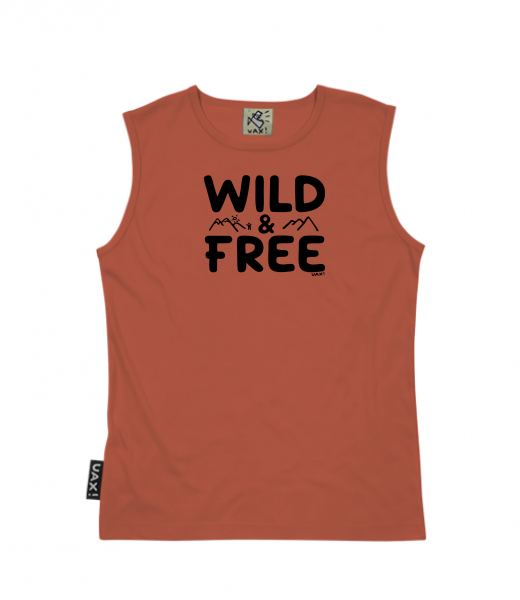Men's sleeveless MUSCLE SHIRT for man with design 1161 WILD AND FREE in color TERRA