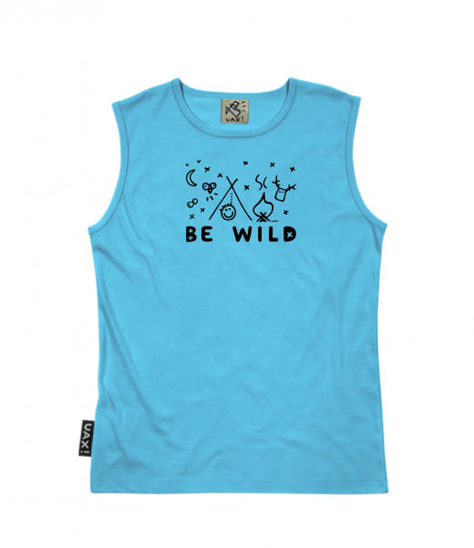 Men's sleeveless MUSCLE SHIRT for man with design 1174 BE WILD in color BLUE ATOLL