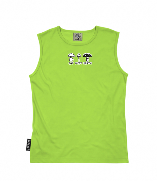Men's sleeveless MUSCLE SHIRT for man with design 1177 EAT MEET DEATH in color PARROT GREEN