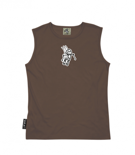 Men's sleeveless MUSCLE SHIRT for man with design 1182 SKI RACER in color CHESTNUT
