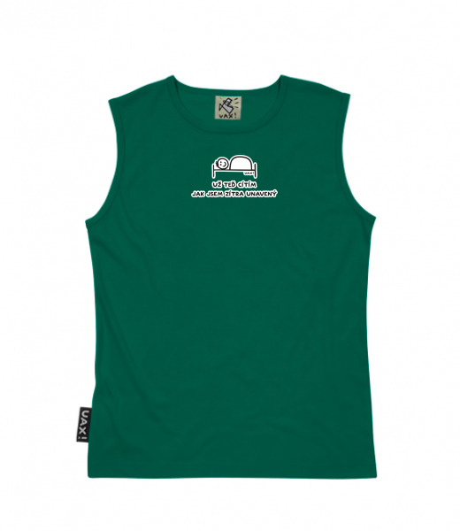 Men's sleeveless MUSCLE SHIRT for man with design 1200 UŽ TEĎ CÍTÍM JAK JSEM ZÍTRA UNAVENÝ in color UNIVERSITY GREEN