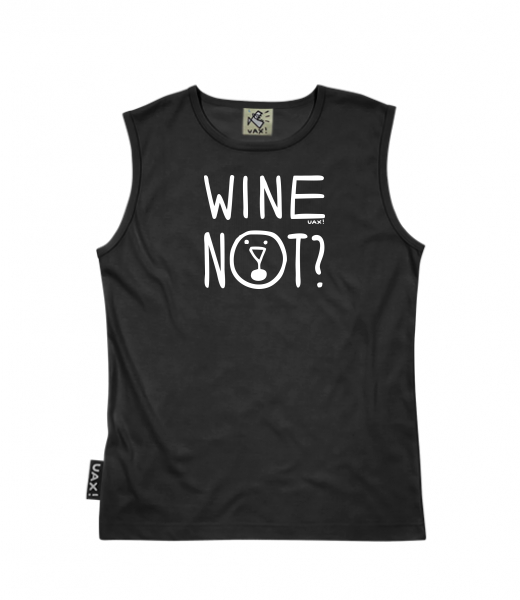 Men's sleeveless MUSCLE SHIRT for man with design 1210 WINE NOT in color BLACK