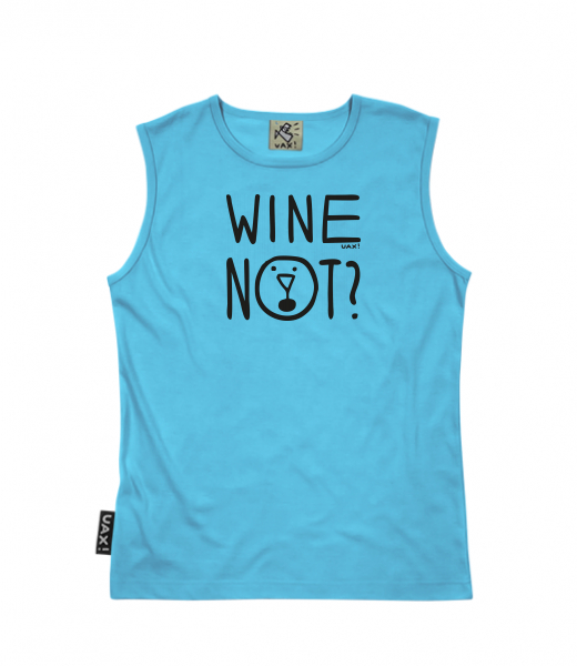 Men's sleeveless MUSCLE SHIRT for man with design 1210 WINE NOT in color BLUE ATOLL