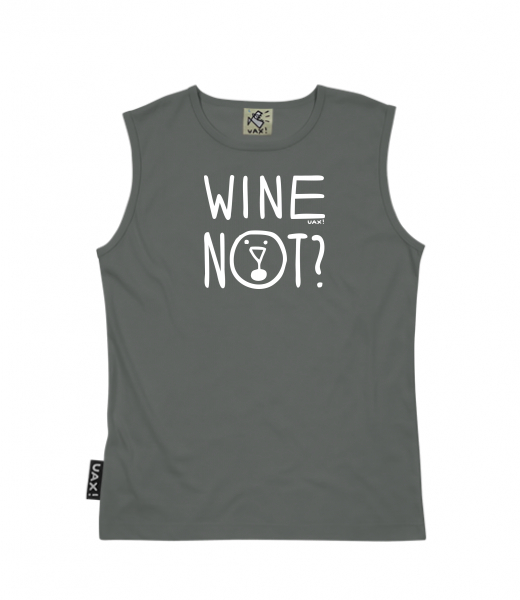 Men's sleeveless MUSCLE SHIRT for man with design 1210 WINE NOT in color DARK GRAY