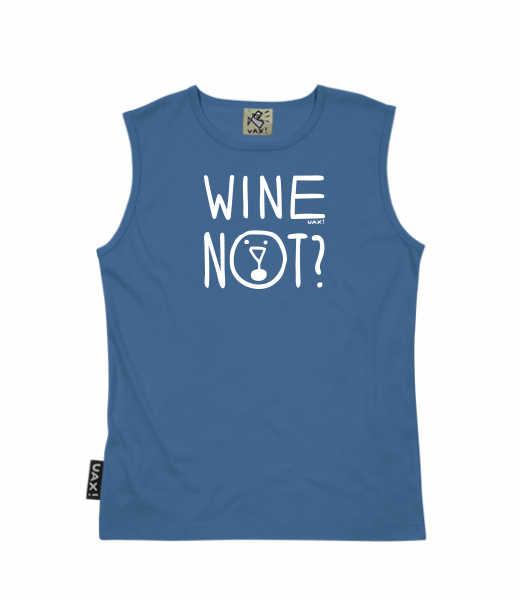 Men's sleeveless MUSCLE SHIRT for man with design 1210 WINE NOT in color MOONLIGHT BLUE