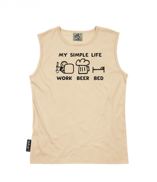 We make sustainable UAX clothing! - hand sewn in the Czech Republic uaxMen uaxAll productsT-shirtsMUSCLE SHIRTdesign 1211 - MY SIMPLE LIFE WORK BEER BEDCARAMEL