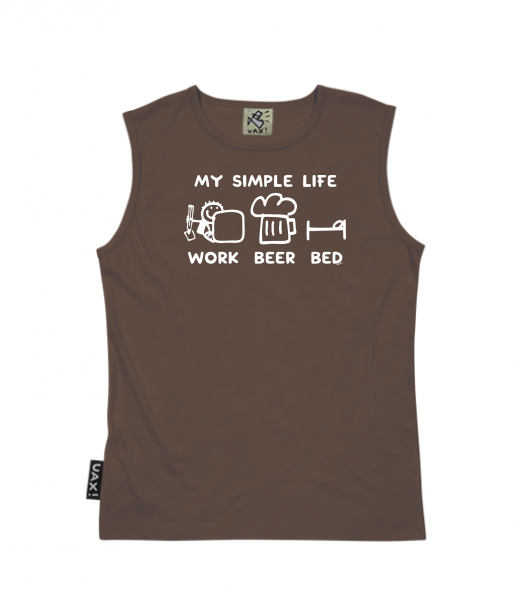 We make sustainable UAX clothing! - hand sewn in the Czech Republic uaxMen uaxAll productsT-shirtsMUSCLE SHIRTdesign 1211 - MY SIMPLE LIFE WORK BEER BEDCHESTNUT