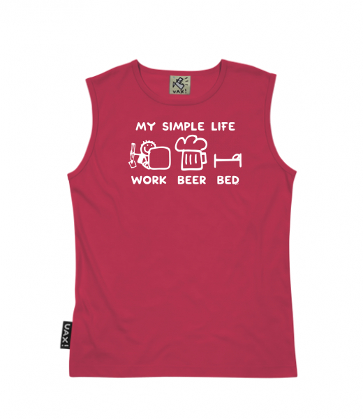 We make sustainable UAX clothing! - hand sewn in the Czech Republic uaxMen uaxAll productsT-shirtsMUSCLE SHIRTdesign 1211 - MY SIMPLE LIFE WORK BEER BEDCHILLY PEPPER RED