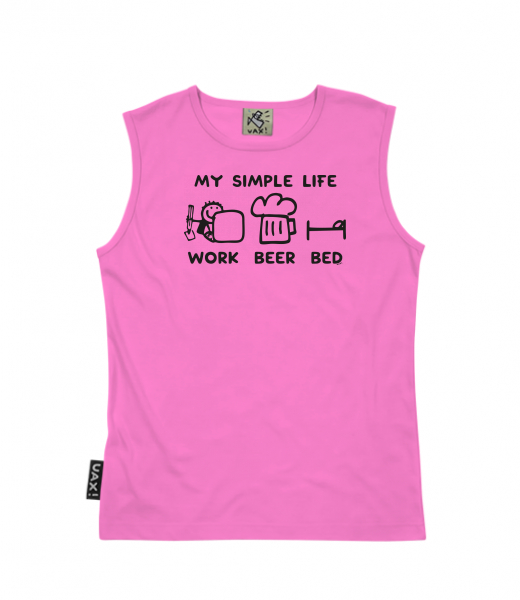 We make sustainable UAX clothing! - hand sewn in the Czech Republic uaxMen uaxAll productsT-shirtsMUSCLE SHIRTdesign 1211 - MY SIMPLE LIFE WORK BEER BEDCLASSIC PINK