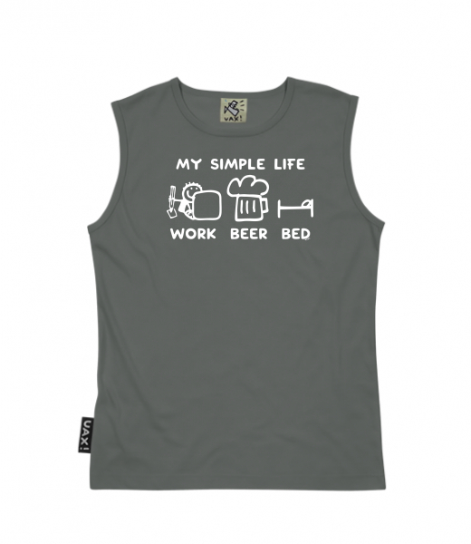 We make sustainable UAX clothing! - hand sewn in the Czech Republic uaxMen uaxAll productsT-shirtsMUSCLE SHIRTdesign 1211 - MY SIMPLE LIFE WORK BEER BEDDARK GRAY
