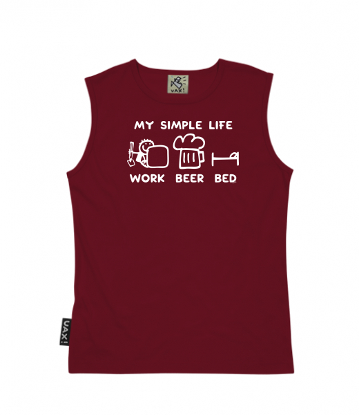 We make sustainable UAX clothing! - hand sewn in the Czech Republic uaxMen uaxAll productsT-shirtsMUSCLE SHIRTdesign 1211 - MY SIMPLE LIFE WORK BEER BEDDARK RED