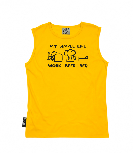 We make sustainable UAX clothing! - hand sewn in the Czech Republic uaxMen uaxAll productsT-shirtsMUSCLE SHIRTdesign 1211 - MY SIMPLE LIFE WORK BEER BEDGOLDEN CREAM
