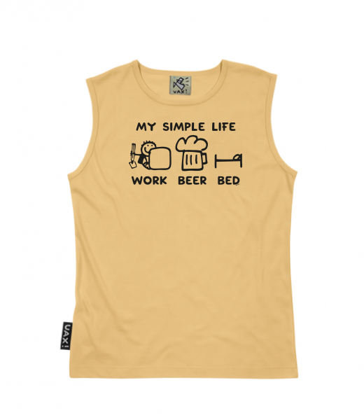 We make sustainable UAX clothing! - hand sewn in the Czech Republic uaxMen uaxAll productsT-shirtsMUSCLE SHIRTdesign 1211 - MY SIMPLE LIFE WORK BEER BEDMUSTARD