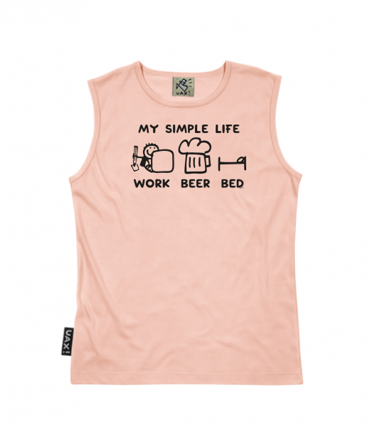 We make sustainable UAX clothing! - hand sewn in the Czech Republic uaxMen uaxAll productsT-shirtsMUSCLE SHIRTdesign 1211 - MY SIMPLE LIFE WORK BEER BEDPEACH