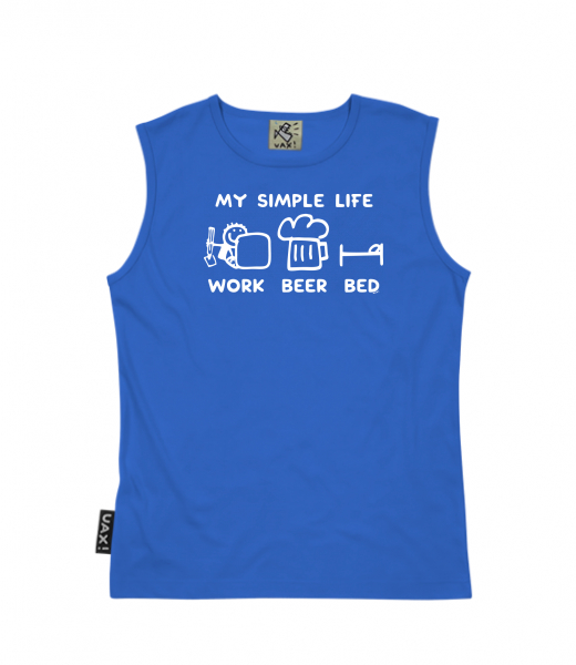We make sustainable UAX clothing! - hand sewn in the Czech Republic uaxMen uaxAll productsT-shirtsMUSCLE SHIRTdesign 1211 - MY SIMPLE LIFE WORK BEER BEDROYAL BLUE